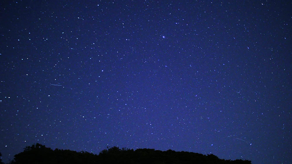 今度は南東側の山方向、2機の人工衛星です