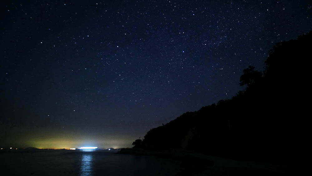 千人堂の立派な松が無くなって、海岸から千人堂を見上げる夜空がスッキリ。