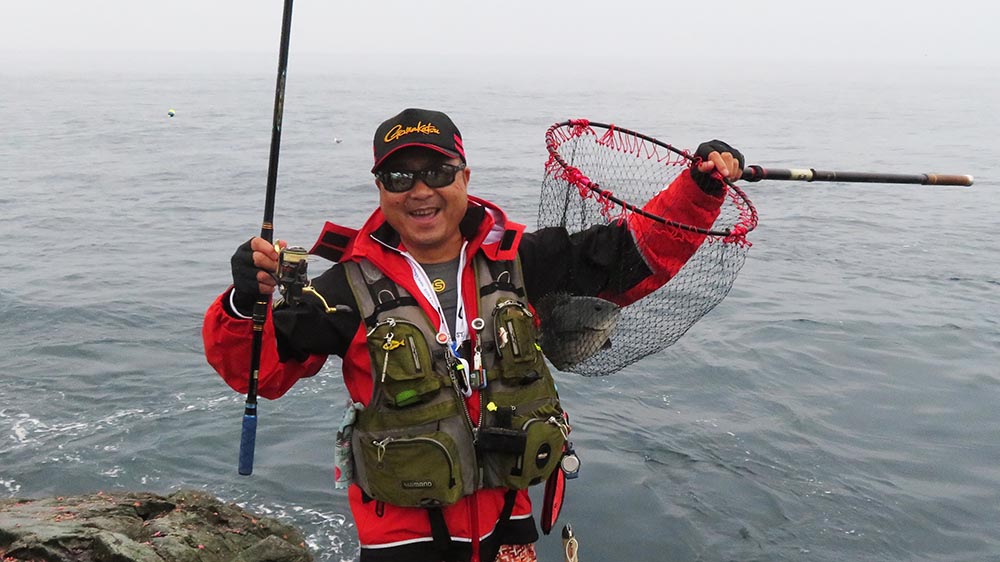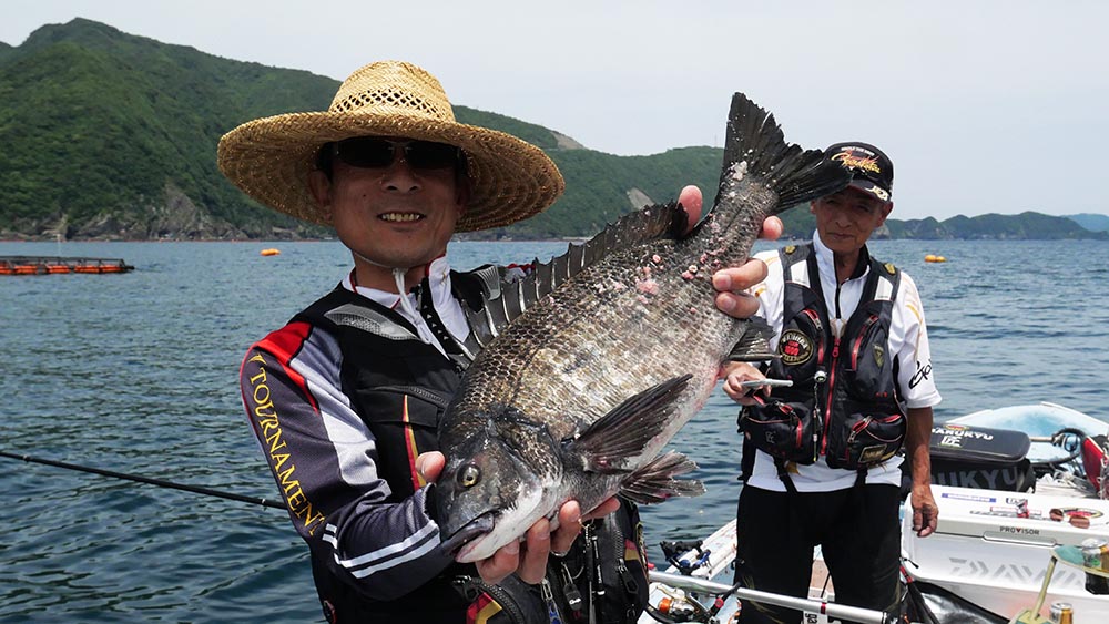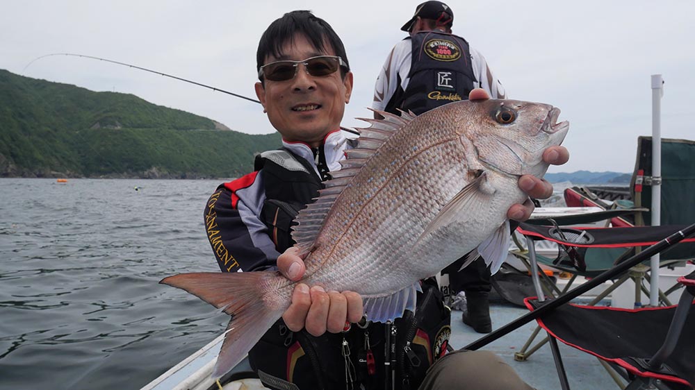 圧巻は最後の一投で77㎝のマダイを釣り上げた松本さん。