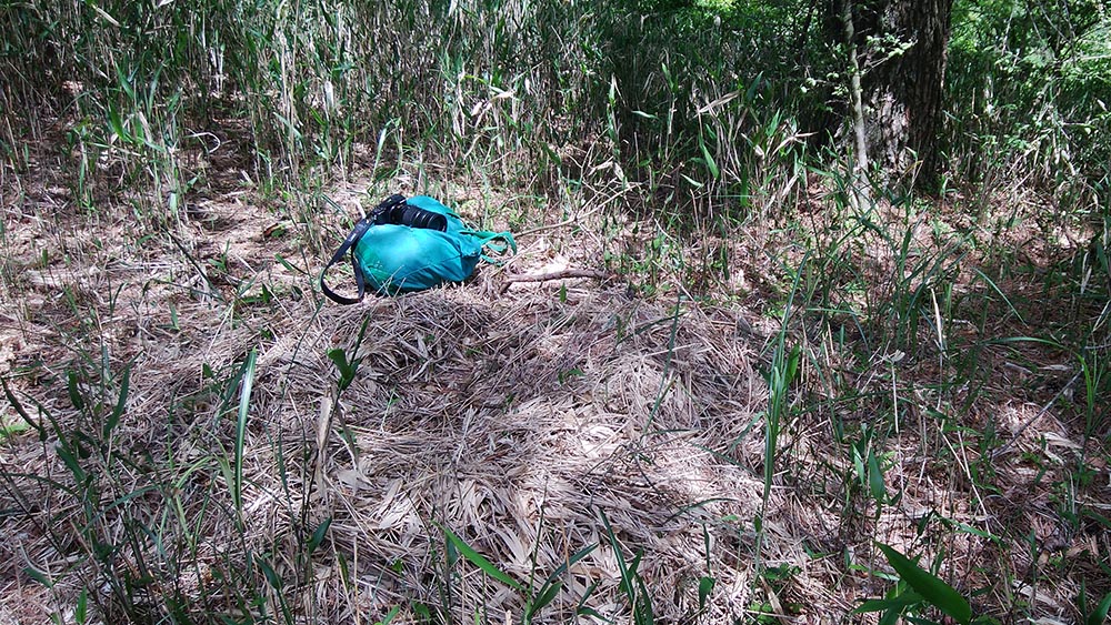 近くの尾根にベッドがありました。たぶん猪でしょう