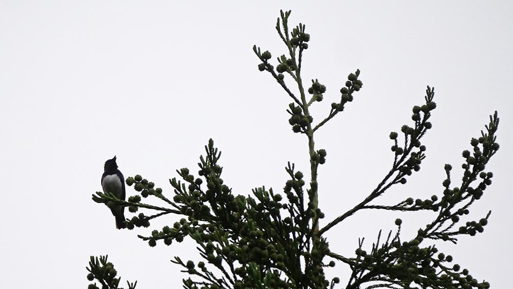 そして今年、4日の黒岳での確認後、八丁原の確認は27日と遅くなりましたが、昨年の個体がソングポイントを5~6ヶ所廻って鳴き続けていました。その内の一ヶ所のソングポイントで鳴くのを確認し、なんとか見えるかもしれない赤松を特定。