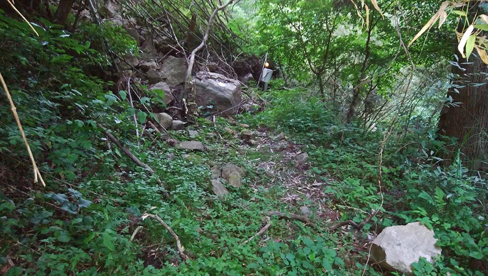 少なくとも渓流から50m以上離れた道であれば、かなり聞きやすくなるのですが・・・おまけにコースの残り800m位は土砂崩れの為道が塞がっており、迂回道路は相当に遠回り。距離を確認すると丁度2kmの場所だったので、ココで終了にしました。
