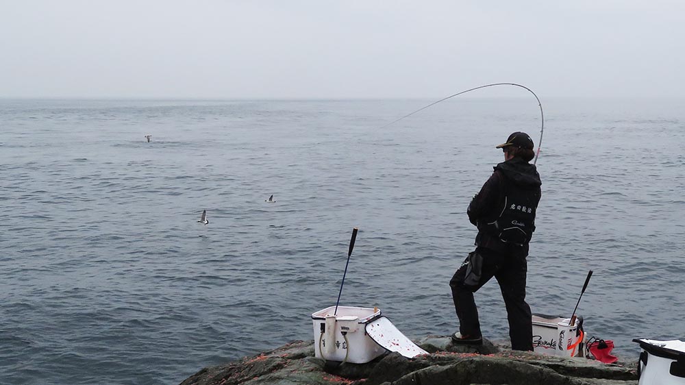 時間は13時30分を廻った所、次のターゲットは小屋のある沖の筏です。この時間帯は、晴れの日には小屋の横から地磯を向いて、筏のシャドウを狙うと結構良い確率でチヌとマダイがアタリますが、時間経過と共にエサ取りも増えるので短期決戦。