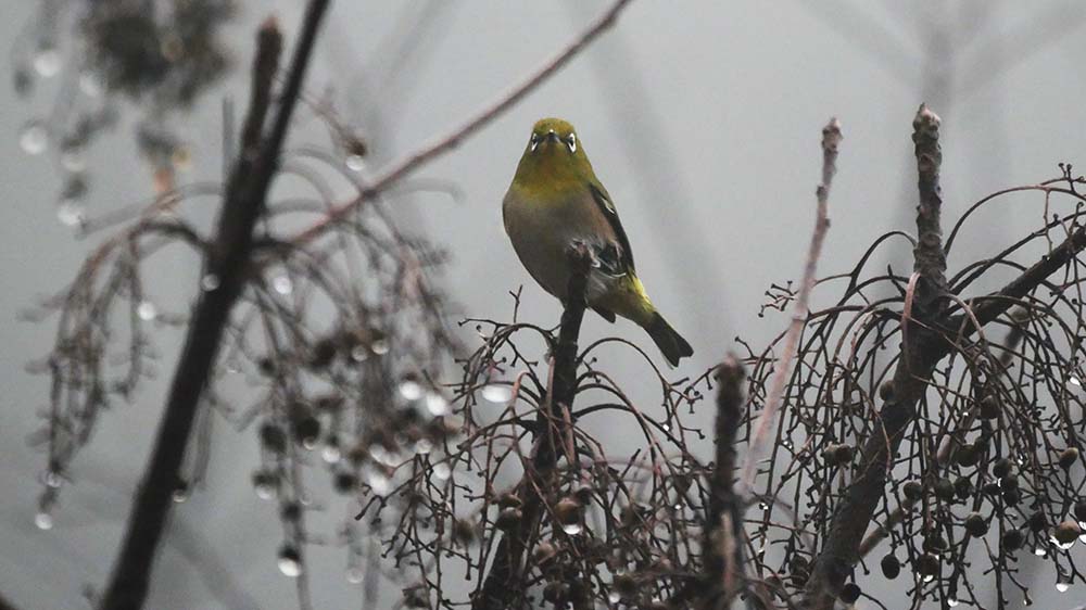 テングス病の枝は密集しており、小鳥達の避難場所兼食事場で煩雑に利用する枝。