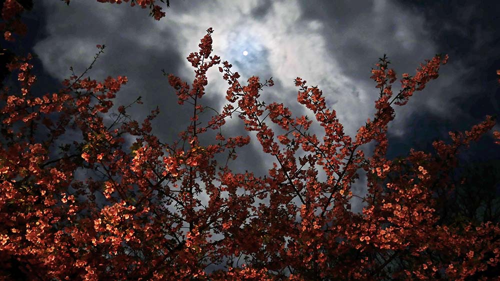 スーパームーンだけ撮るより、今が満開の河津桜の背景で撮る方が良い。