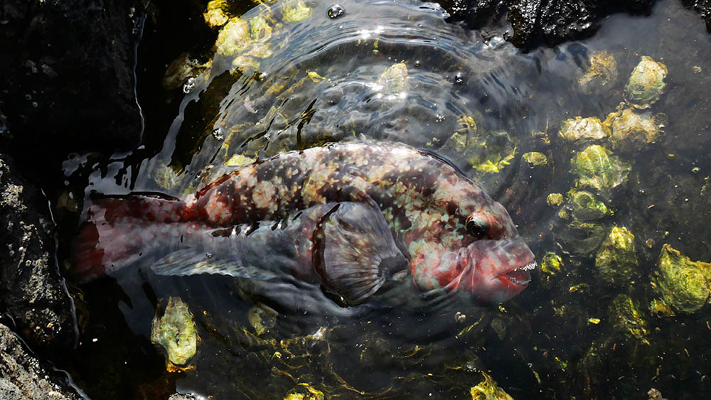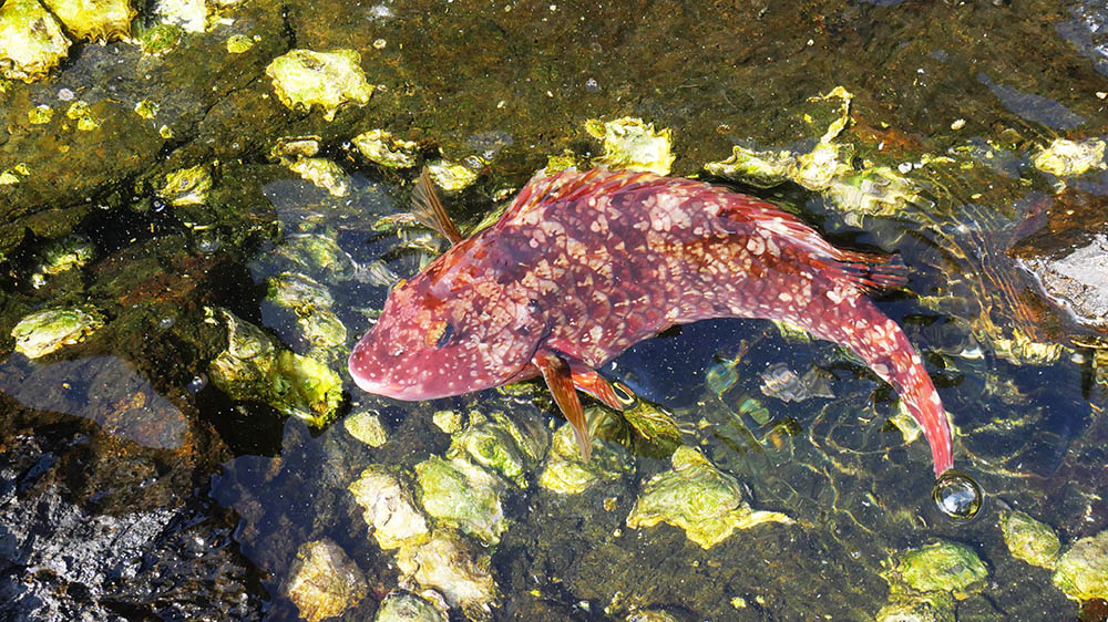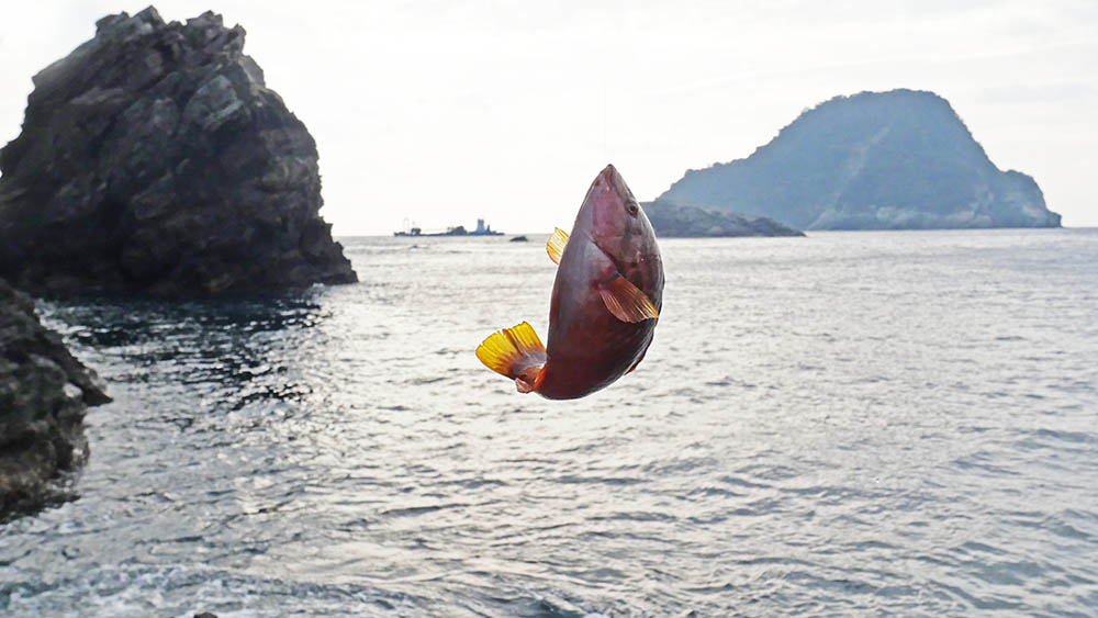 グレもマダイも来ません。40~50mくらい流して2枚のベラ。グレはダメでも食べ頃のマダイが出る場所ですが、今回は残念ながら不発に終わってしまいました。引かれ潮はアイゴ4枚のみで、グレは納竿時の14時30分頃まで音沙汰なし。