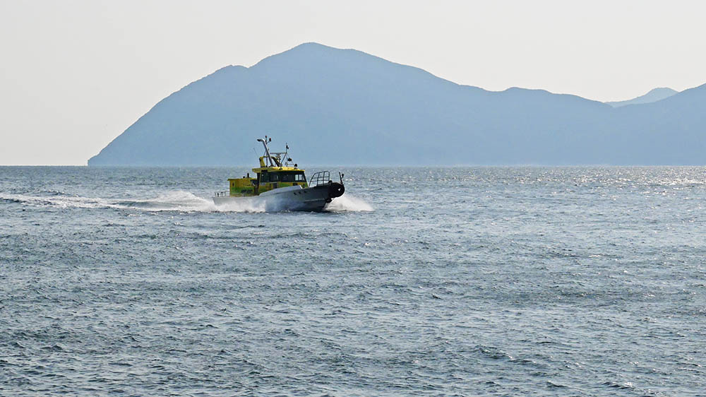 いつもお世話になる若戎丸 後方は仙崎