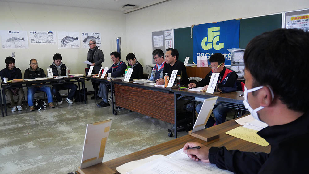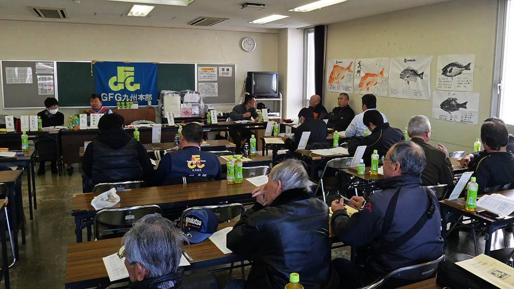 午前中の支部長会議は依頼された各支部役員と本部役員が議題に沿って議論。昼食後の総会は、役員プラス一般会員(年間賞候補の魚拓提出者が多い)が参加。