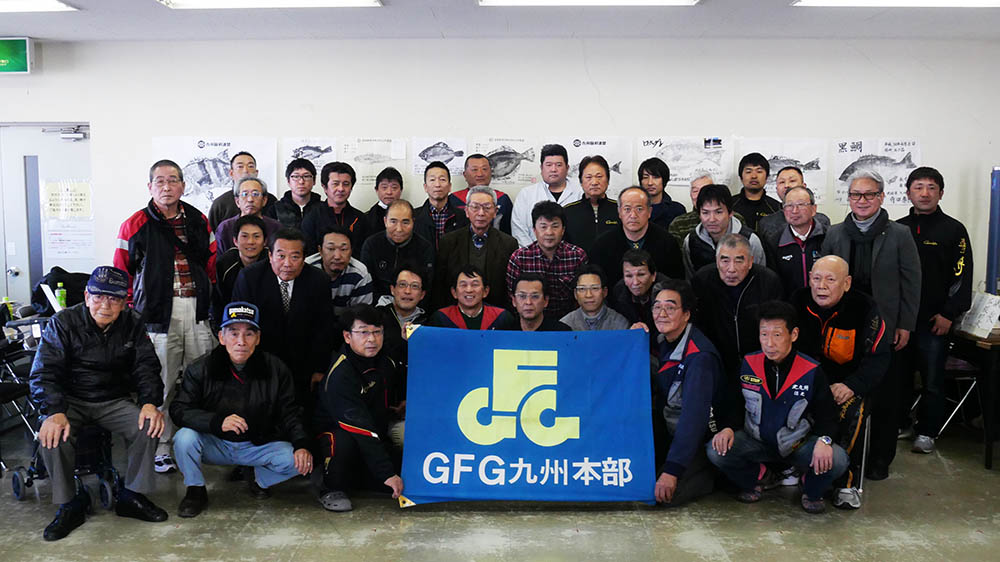 大分県支部からは参加依頼を受けた支部長の私と、青年部部長の久保平君・事務局の城本君の3人で戸畑へ行ってきました。大分からの年間賞魚拓の提出者は私一人で、他に対象者が居れば声掛けして一緒に行くこともあるのですが・・。