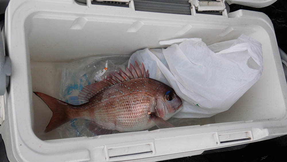 私は8時頃から釣り始めましたが、45㎝は優にあるグレを水面下2m位まで浮かしたところで痛恨の鈎外れバラシ。その後のアタリは小型マダイ1枚のみ。