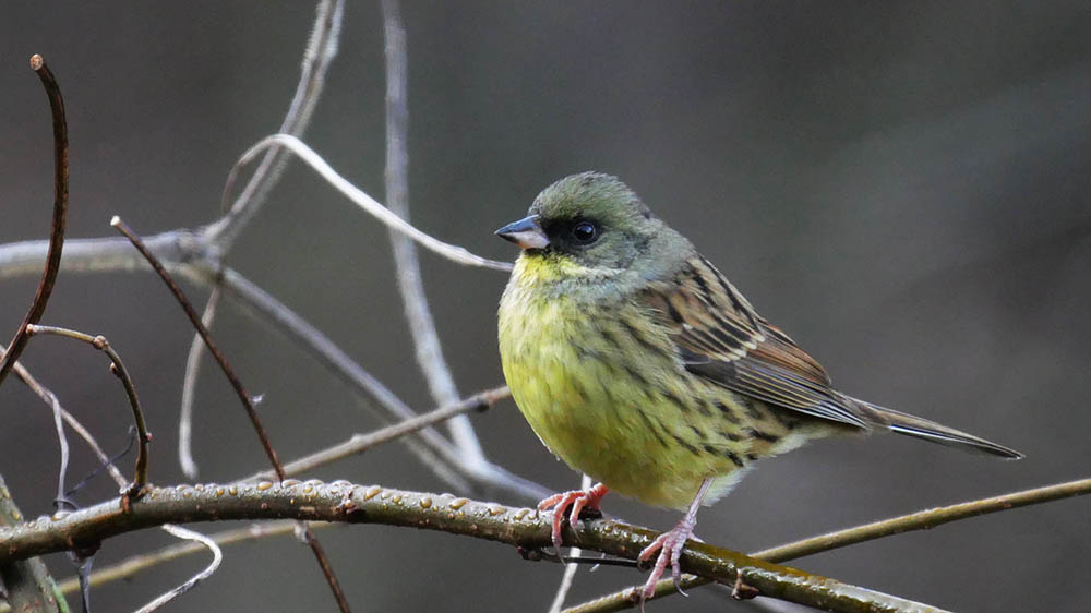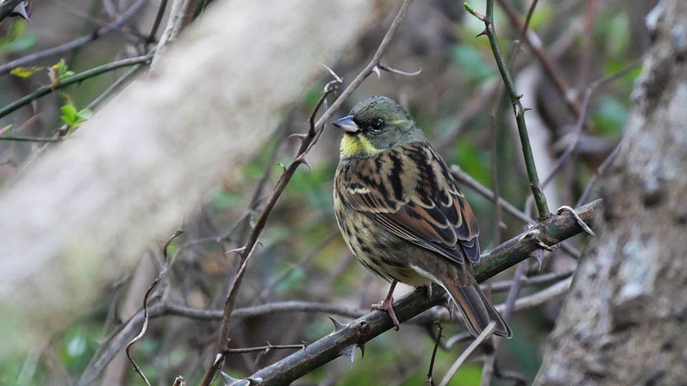 そんな中から今回はアオジのオス達を紹介します。アオジは冬鳥として本州中部以北から主としてやって来ており、その中には足環の着いたアオジも来ています。