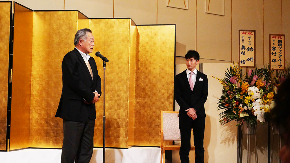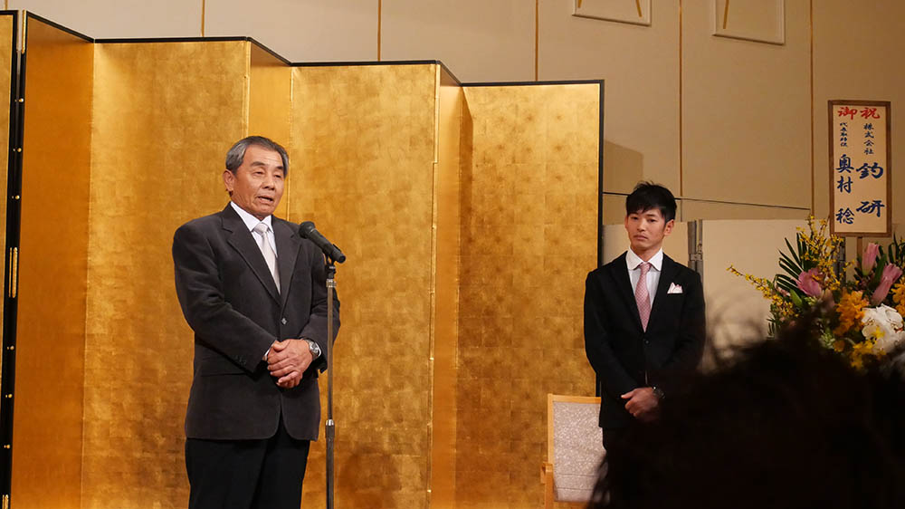 奥村釣研社長の祝辞