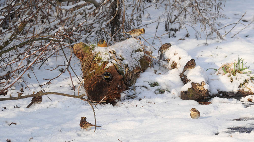 餌場に多く来るのはミヤマホオジロ、一羽アトリも・・