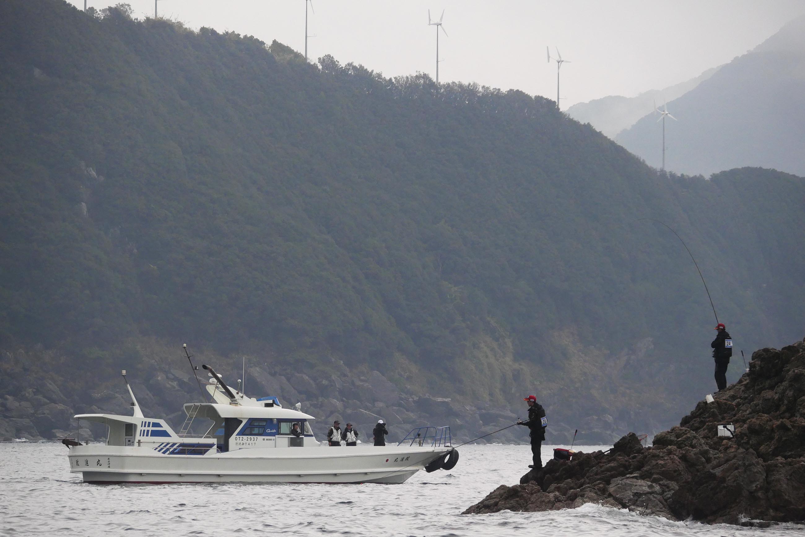 この様な状況で全国大会が米水津の磯で開催されましたが、渡船組合は組合長の松下船長を始め、7隻の渡船が協力し合って無事に大会を完結してくれました。
