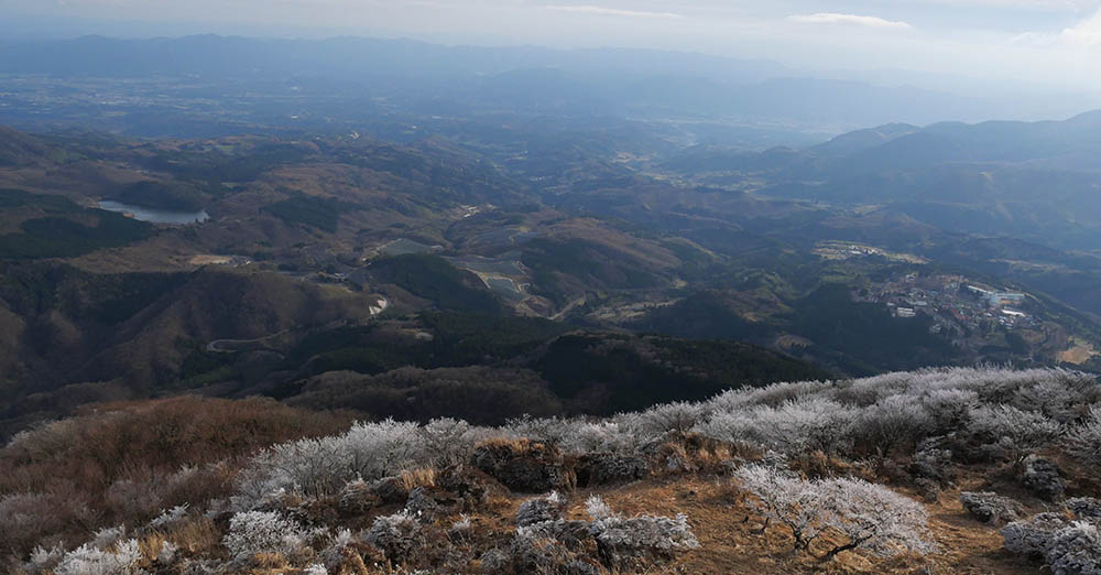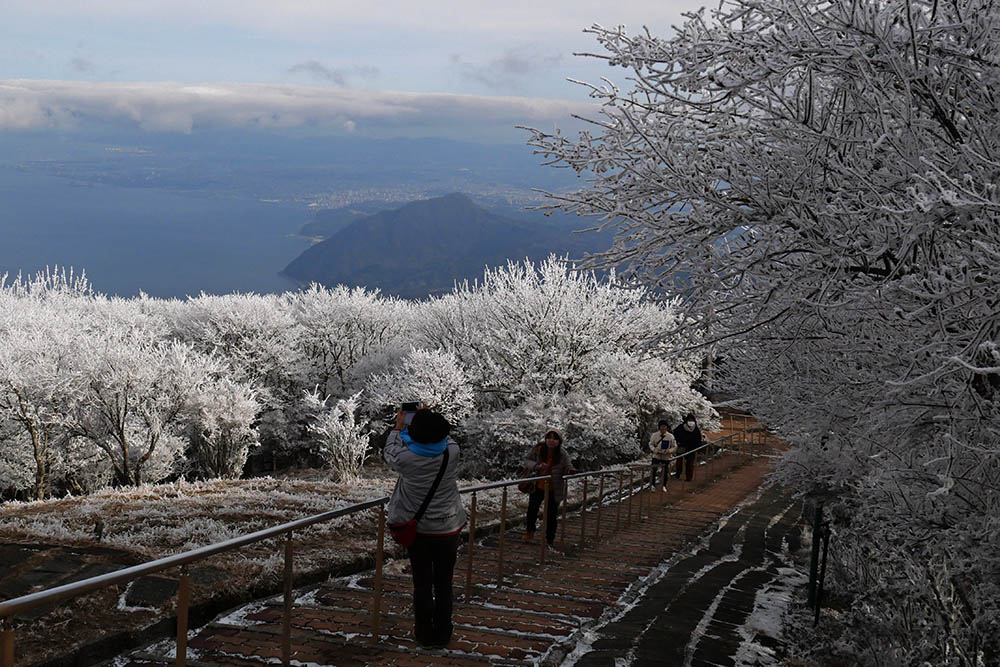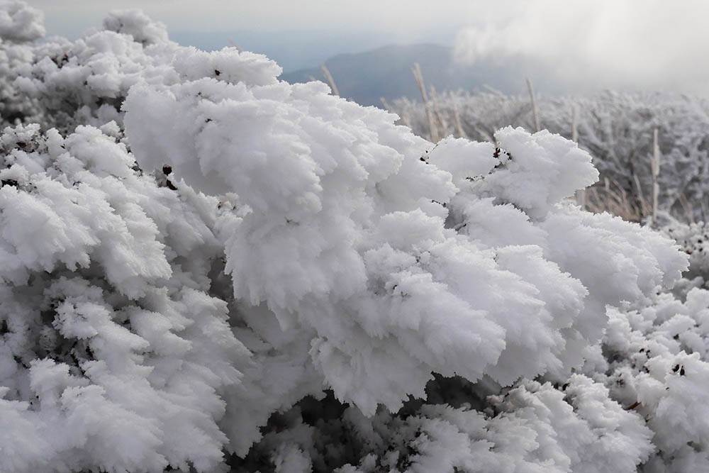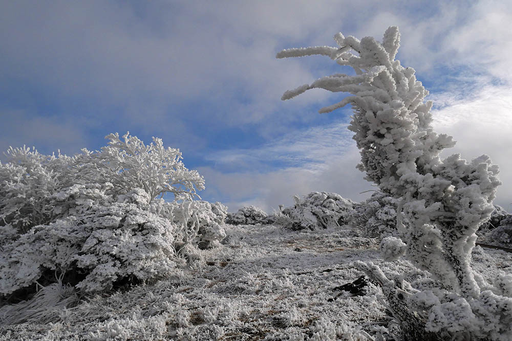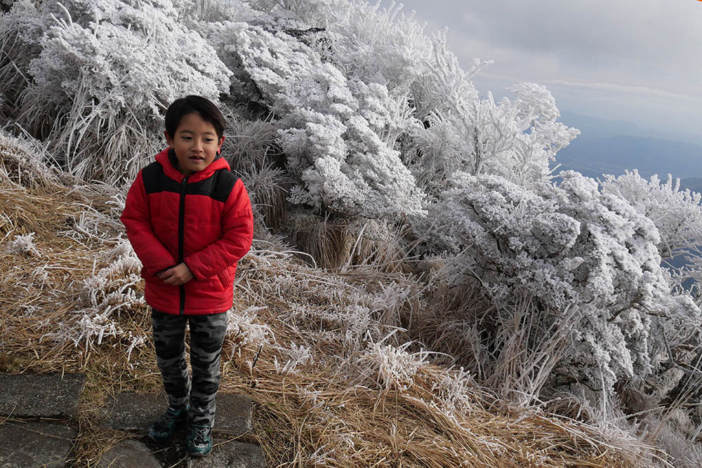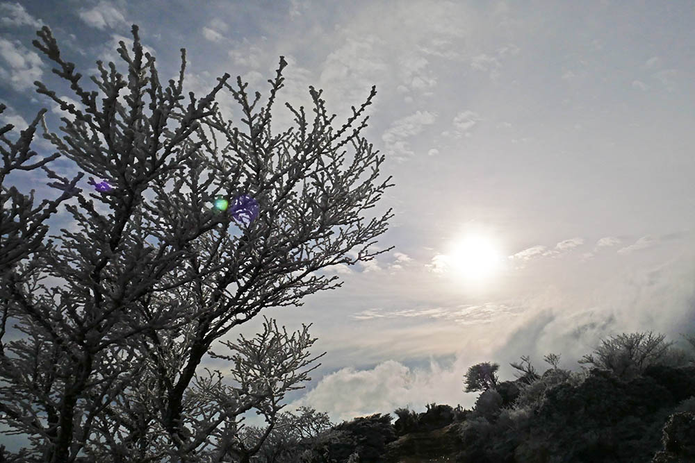 山頂付近には霧氷が一面に広がっています。