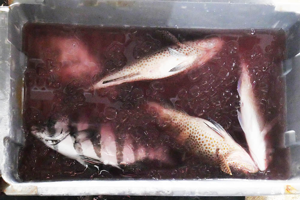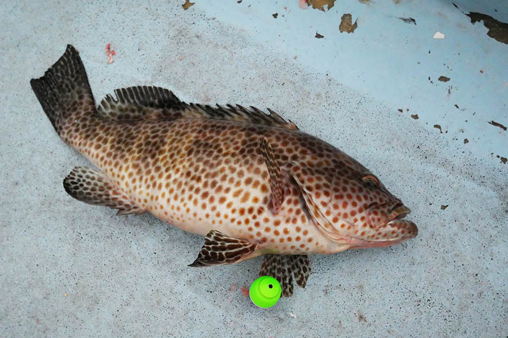水深20mラインでオオモンハタ・小型マダイ・サンバソウ・ウマズラハギなど。