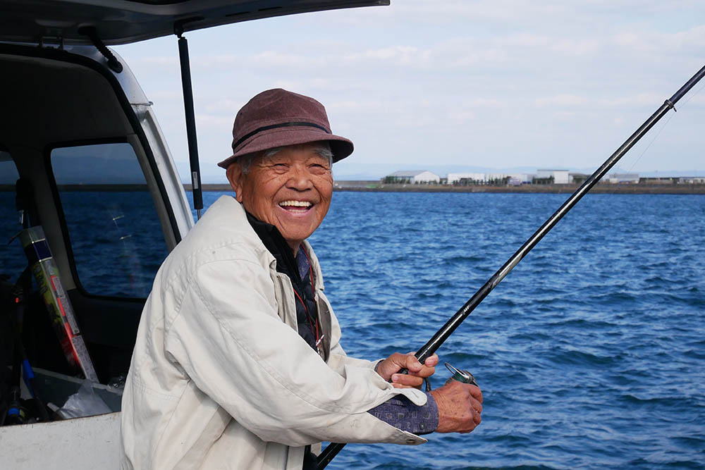 数々の武勇伝を持つスーパーおじいちゃんは、車で釣り場へ乗り着けます。