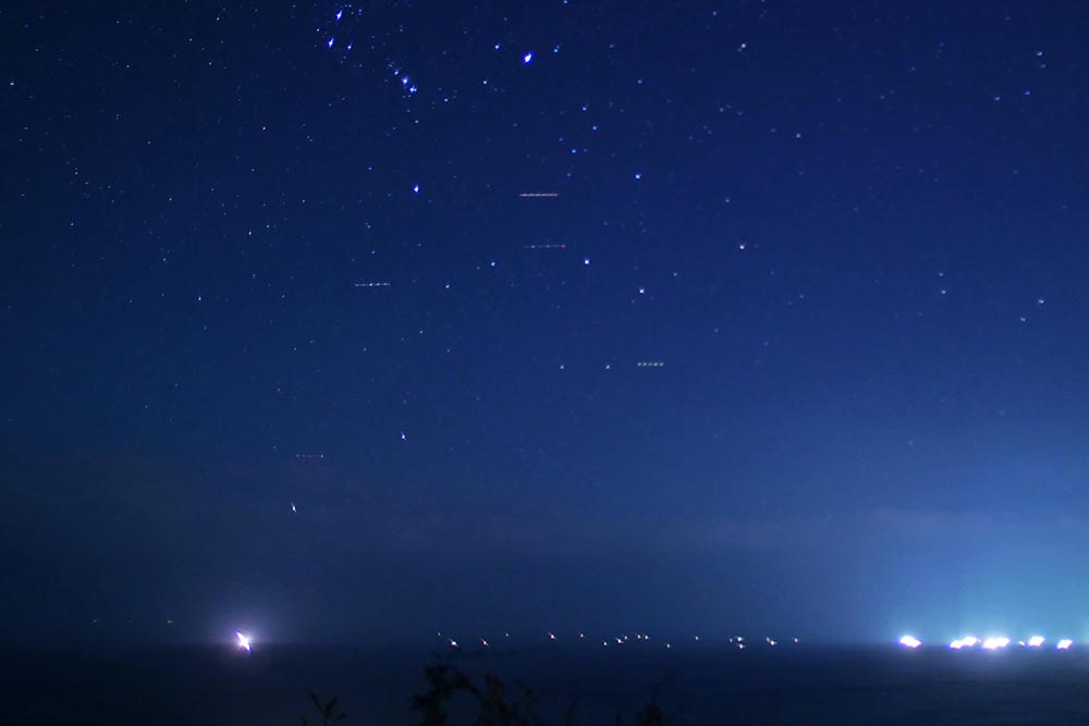 人工衛星2基、太陽の光を100~300㎞上空で反射(5~6等星くらいの光の線)