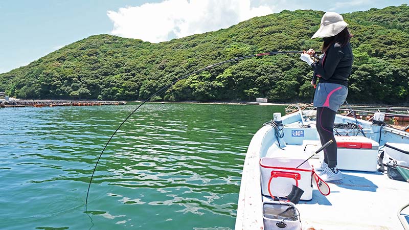 奥さんが大きく竿を曲げて・・