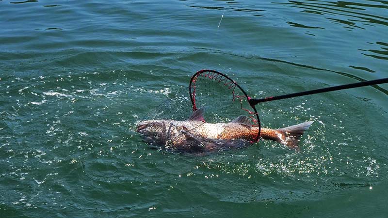 その後も奥さんに良いアタリ、途中まで頑張っていましたが魚の引きが強く、旦那さんとバトンタッチして漸くタモに納まったのは87㎝7㎏オーバー!