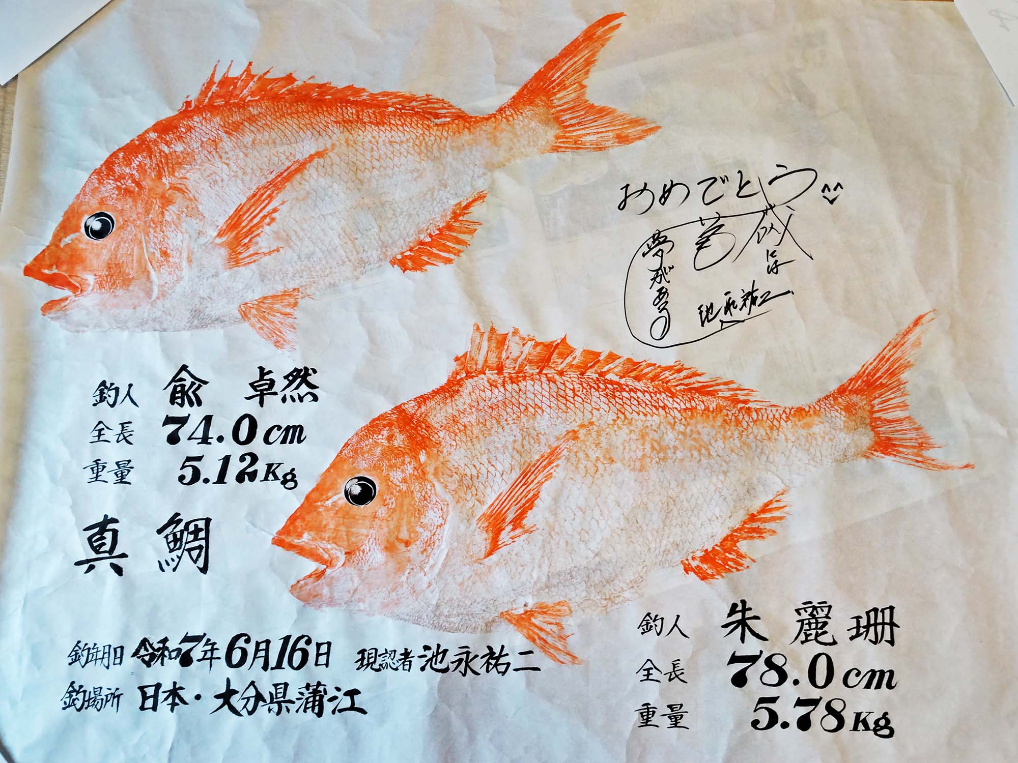 兪さんと奥様のデオンさんが大分に釣りに来ています。昨日は船からのタイラバで奥さんが66㎝マダイ他、兪さんはカサゴだけの様でした。