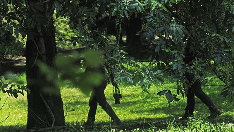 枝葉が多いけどロープで引っ張ると、結構な勢いで道が開いて来た。