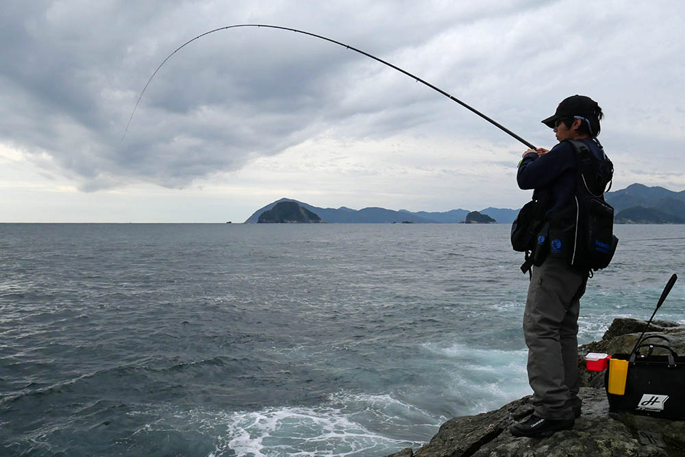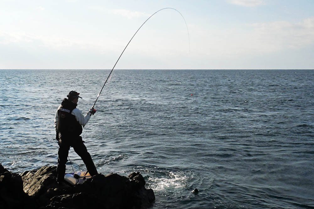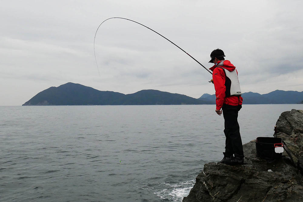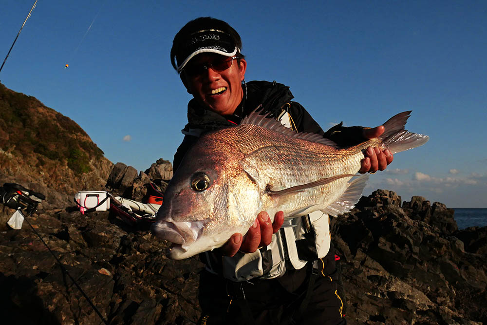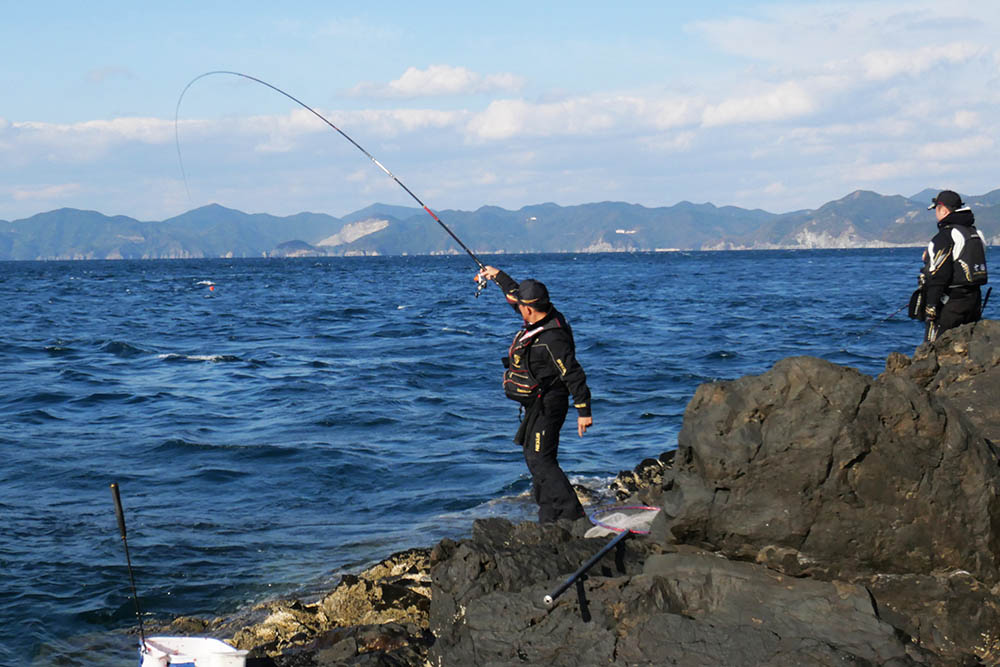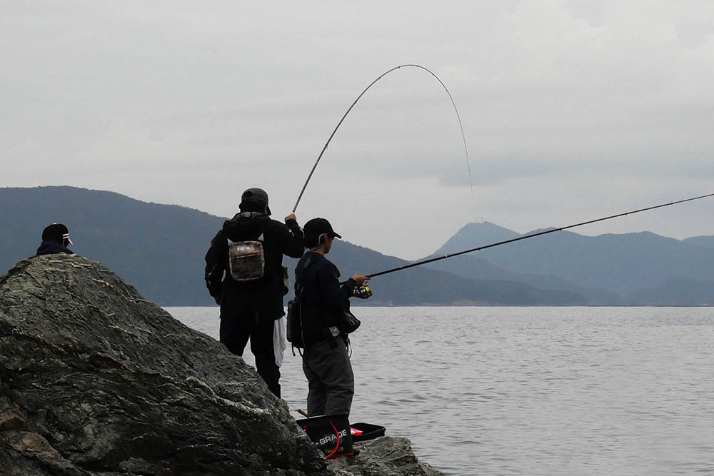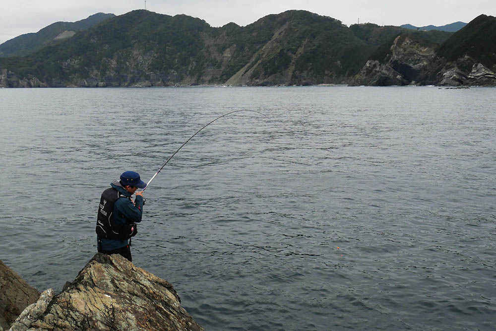 こちらの磯は型こそ小さいものの、グレ・バリ・マダイ・ヒラスズキと竿曲げです。