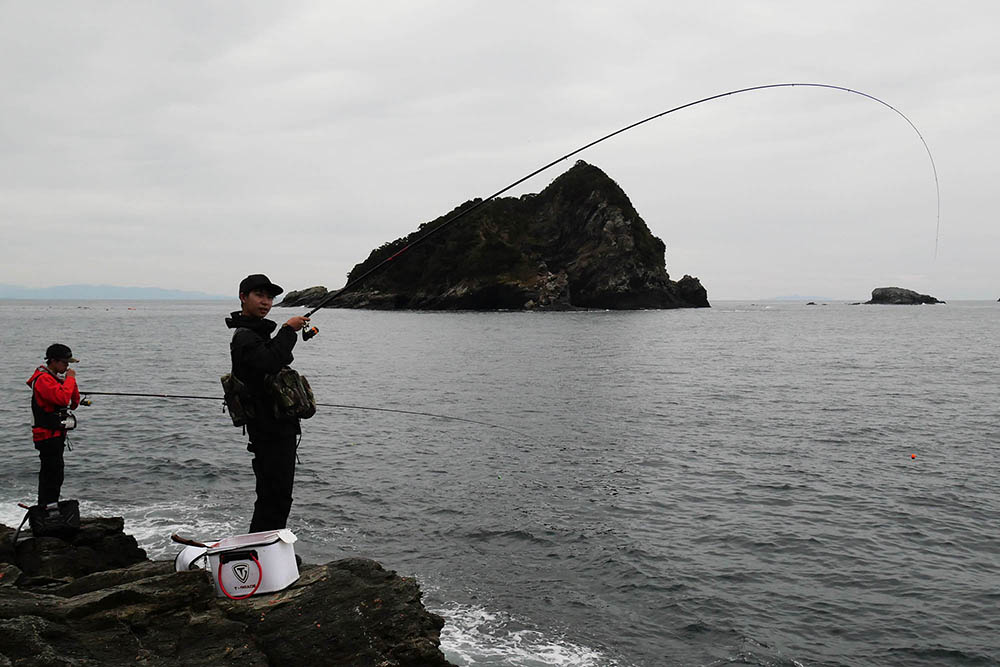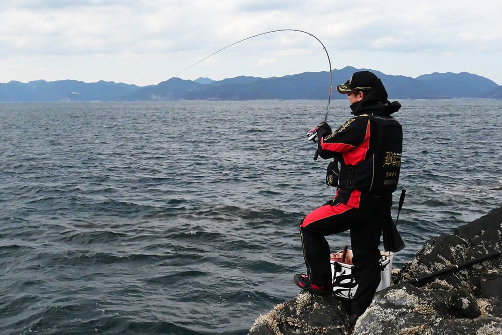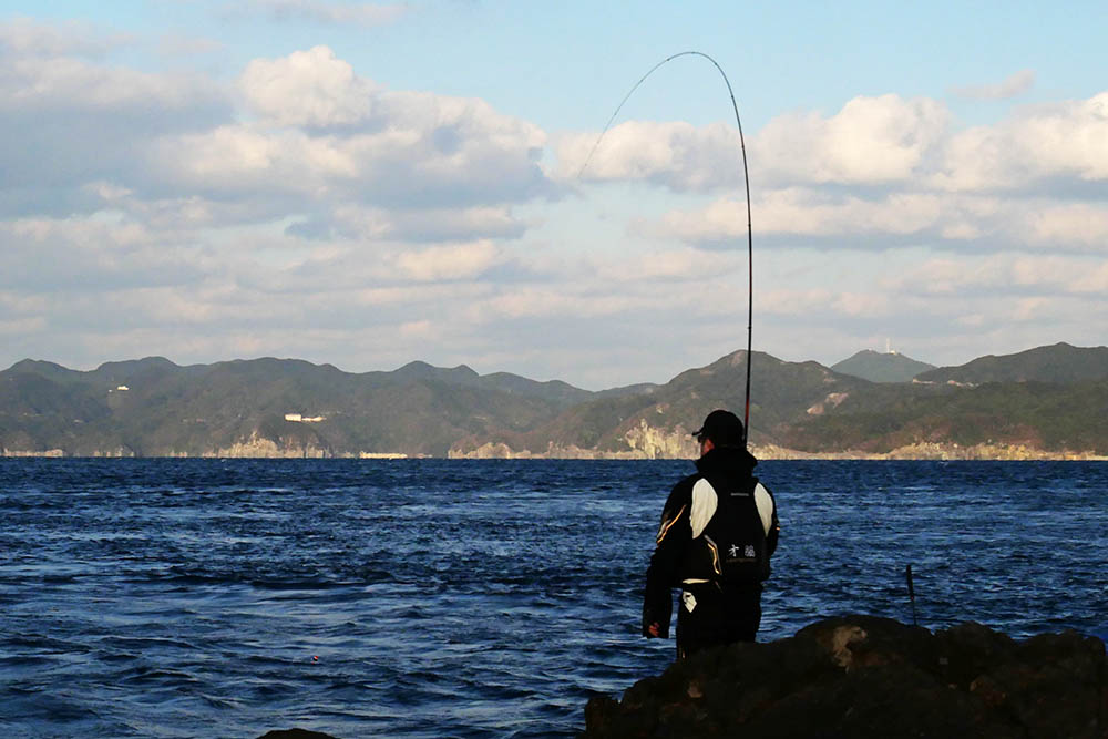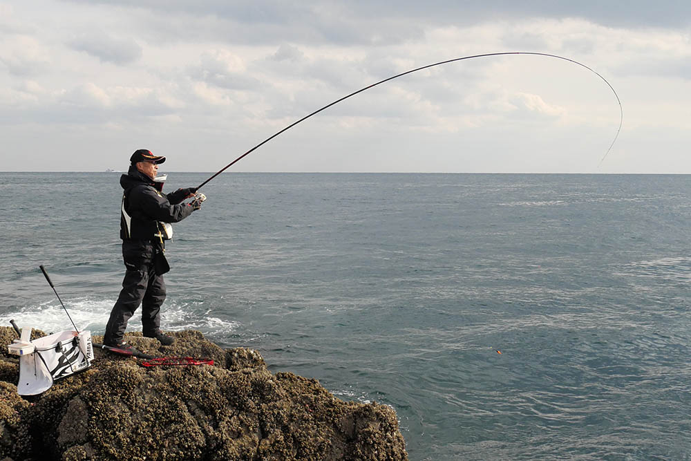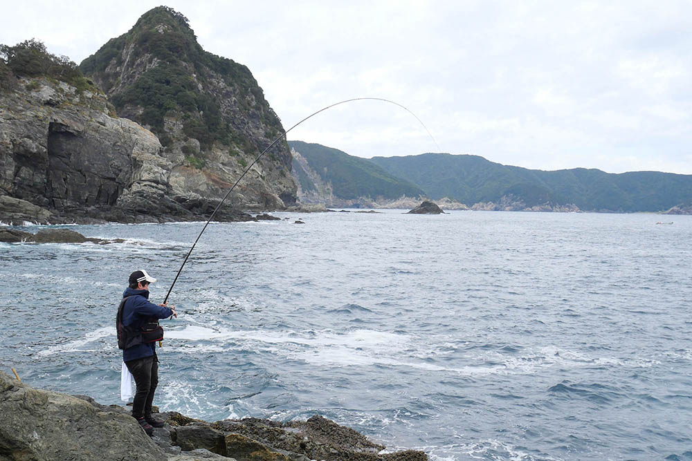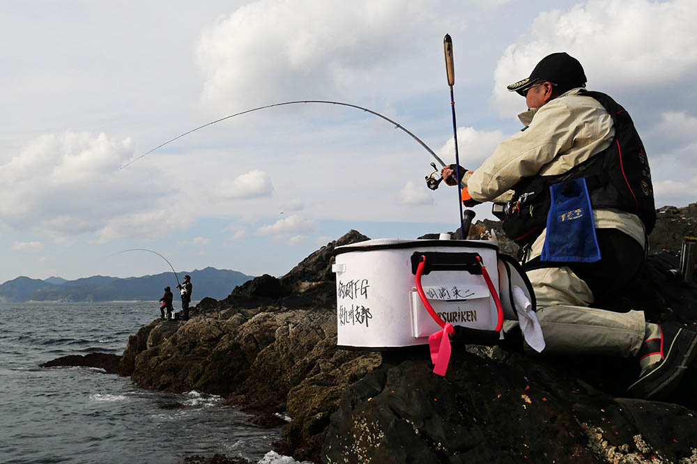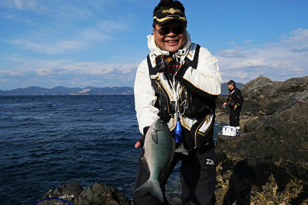 こちらの磯は型こそ小さいものの、グレ・バリ・マダイ・ヒラスズキと竿曲げです。