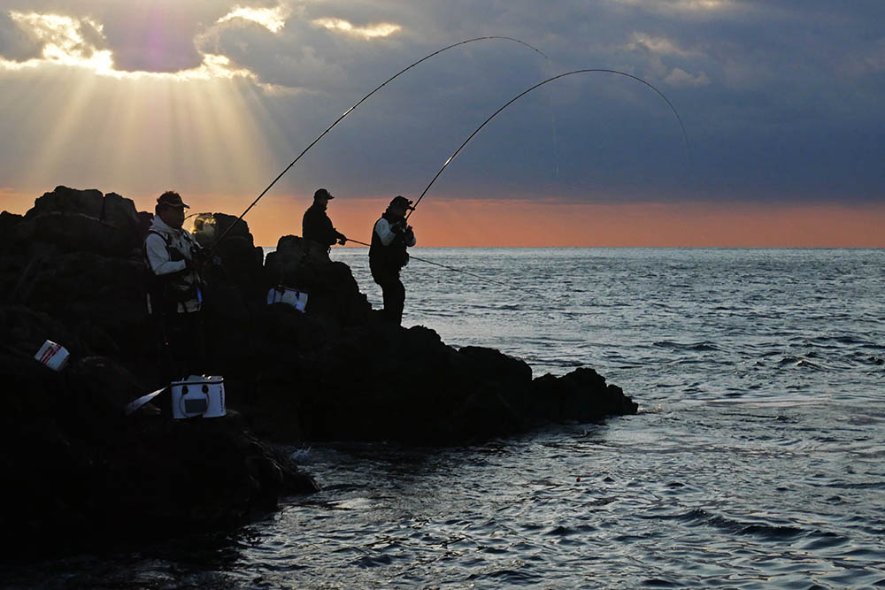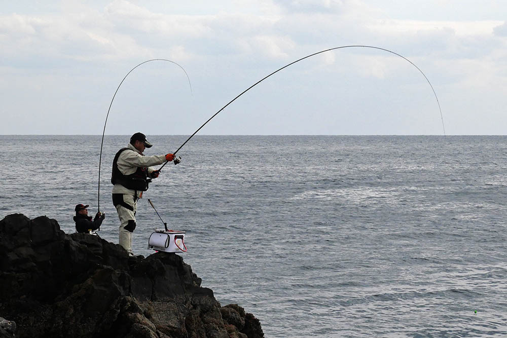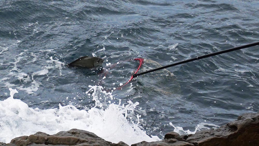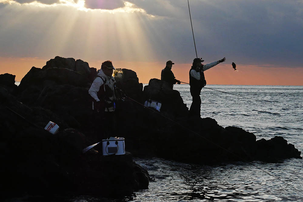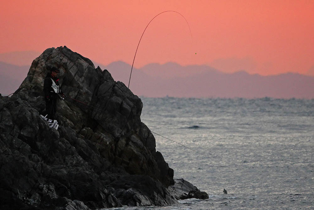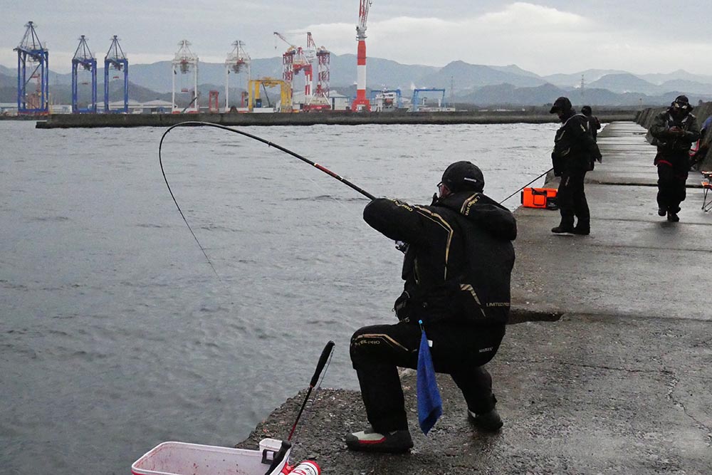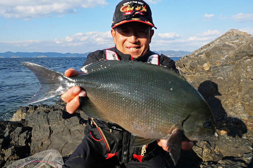 こちらの磯は型こそ小さいものの、グレ・バリ・マダイ・ヒラスズキと竿曲げです。