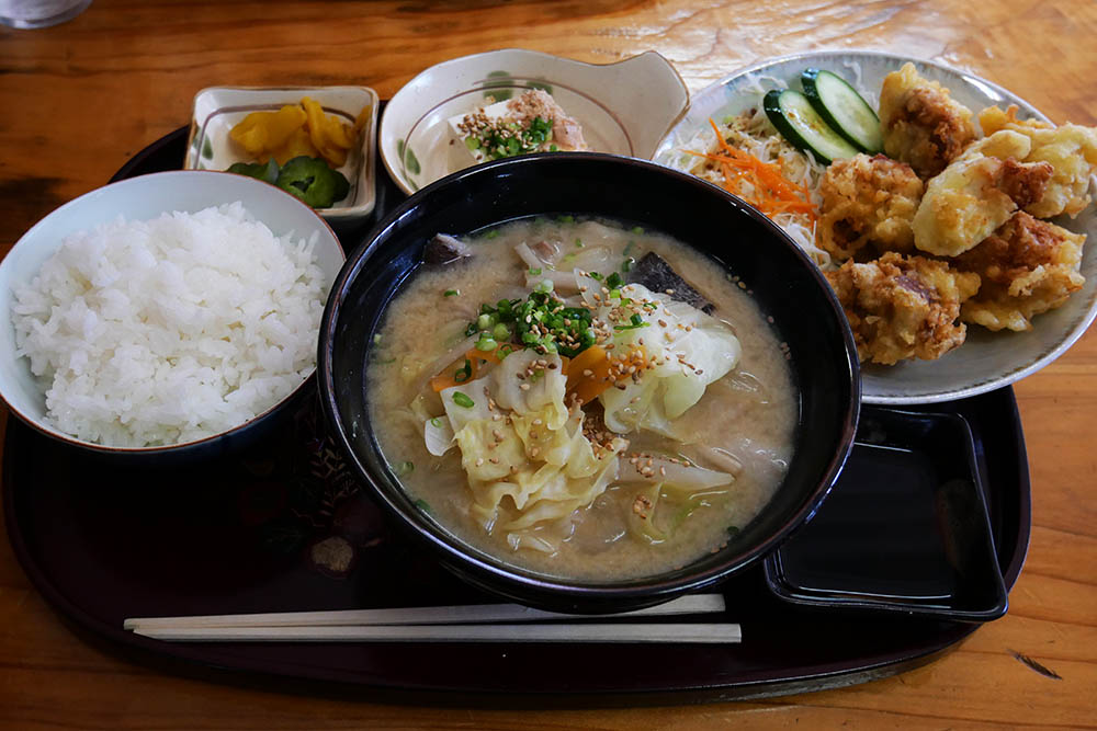 大分名物の鳥天と大分名物のだんご汁、セット価格1000円で頂いていたもの。