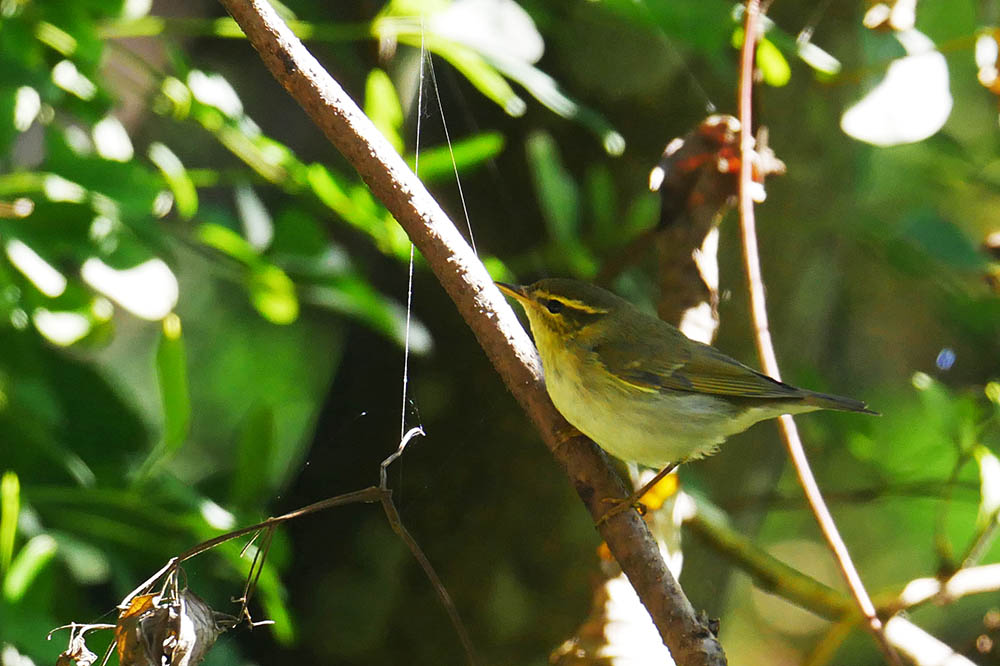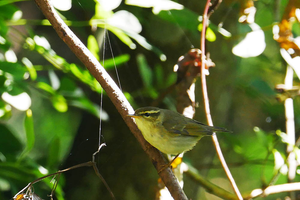色々と調べてみると、オオムシクイにたどり着きました。5月の姫島で囀りや地鳴きを聞いてはいますが、実物は見れずじまいの小鳥です。今回は無言で通り過ぎましたが、全体的な特徴と今頃の移動を考慮して、オオムシクイとの判断に至りました。