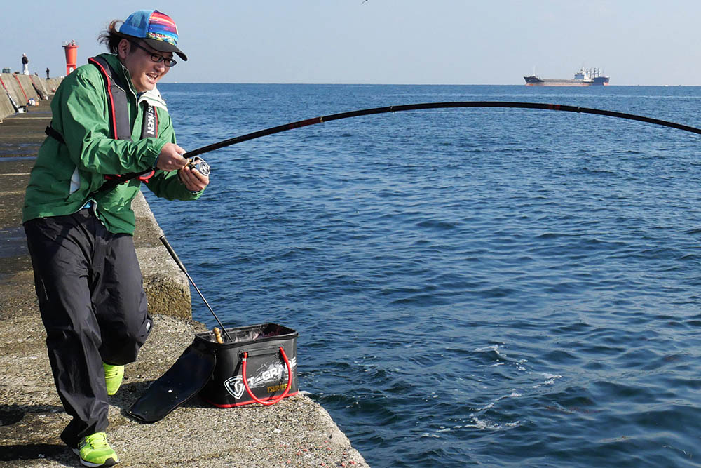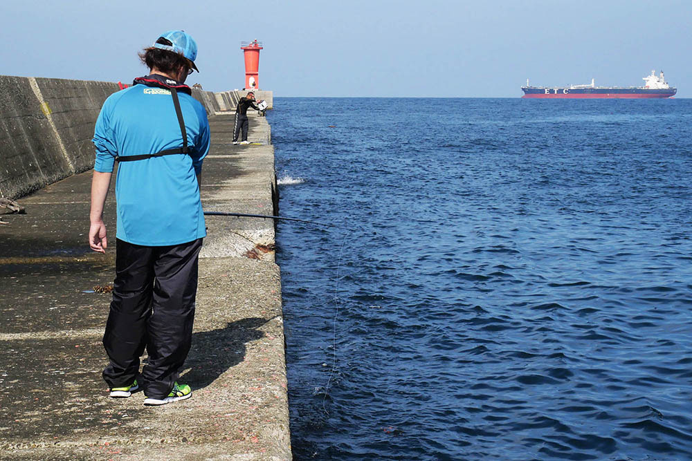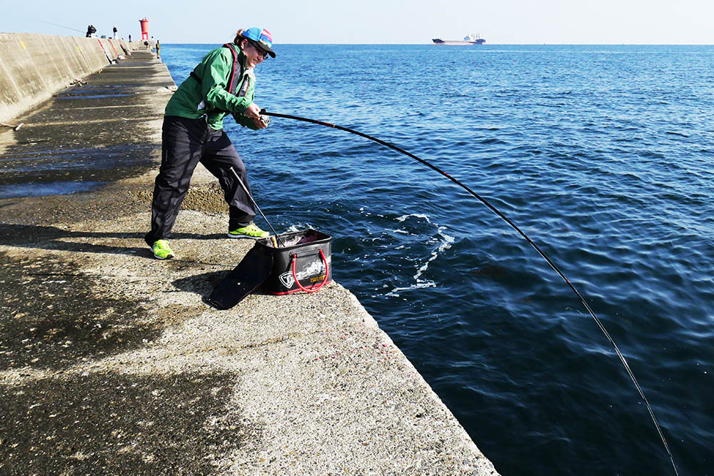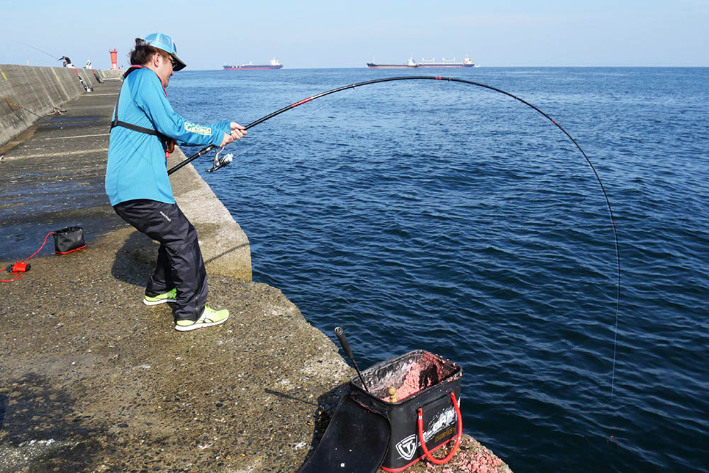 フカセカンダイは岸壁の際、エサを落とし込んでいくとアタリが良く出ます