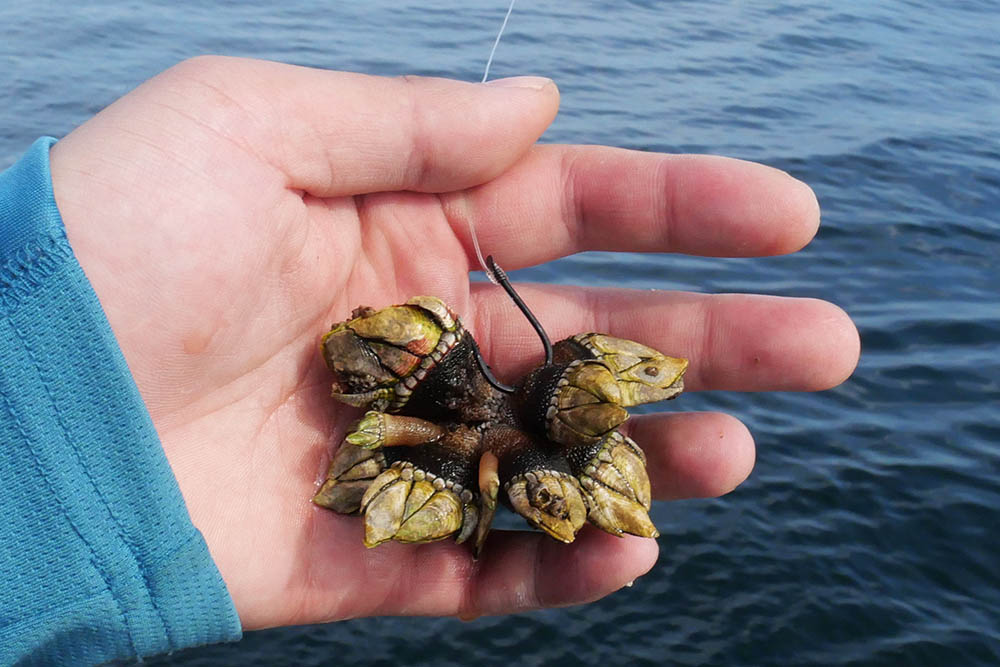 この釣りの肝は、岸壁に付着したフジツボ・カメノテ・カラスガイなどのマキエ。