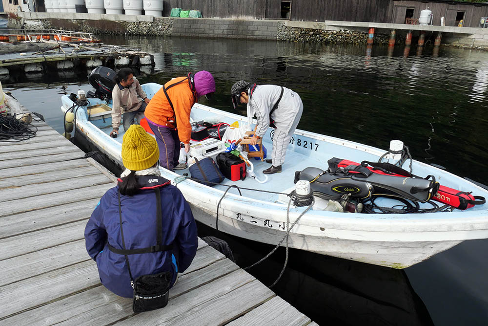 横島1番は朝が干潮でしたが、昼前からウネリが船着き場周辺まで洗うようになり・・・