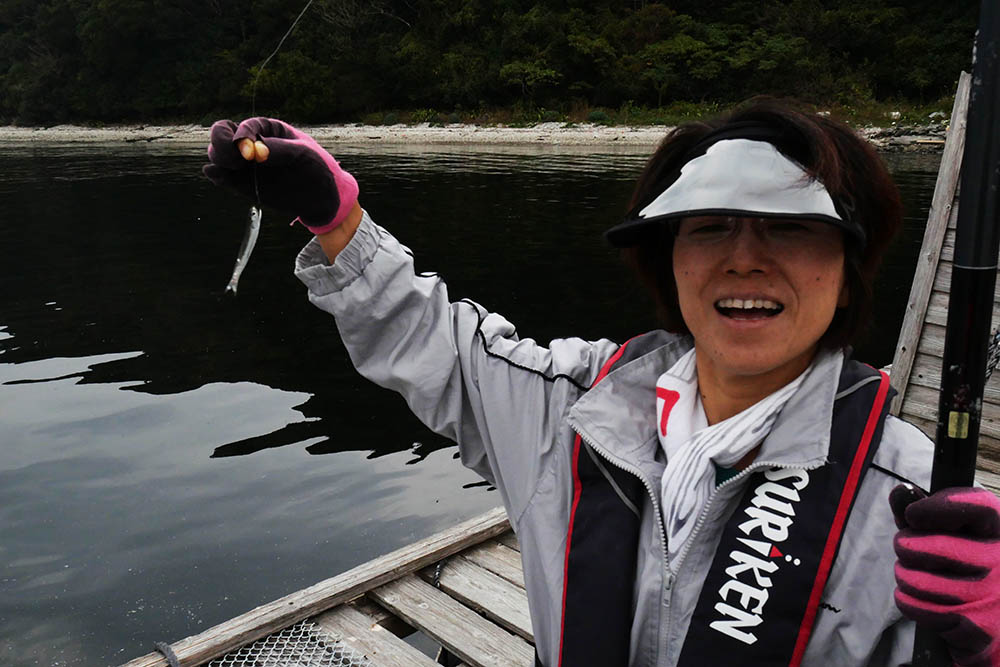 少し下には15㎝~20㎝のサバゴがサシエを横取り、アジは1匹のみで早々に退散。