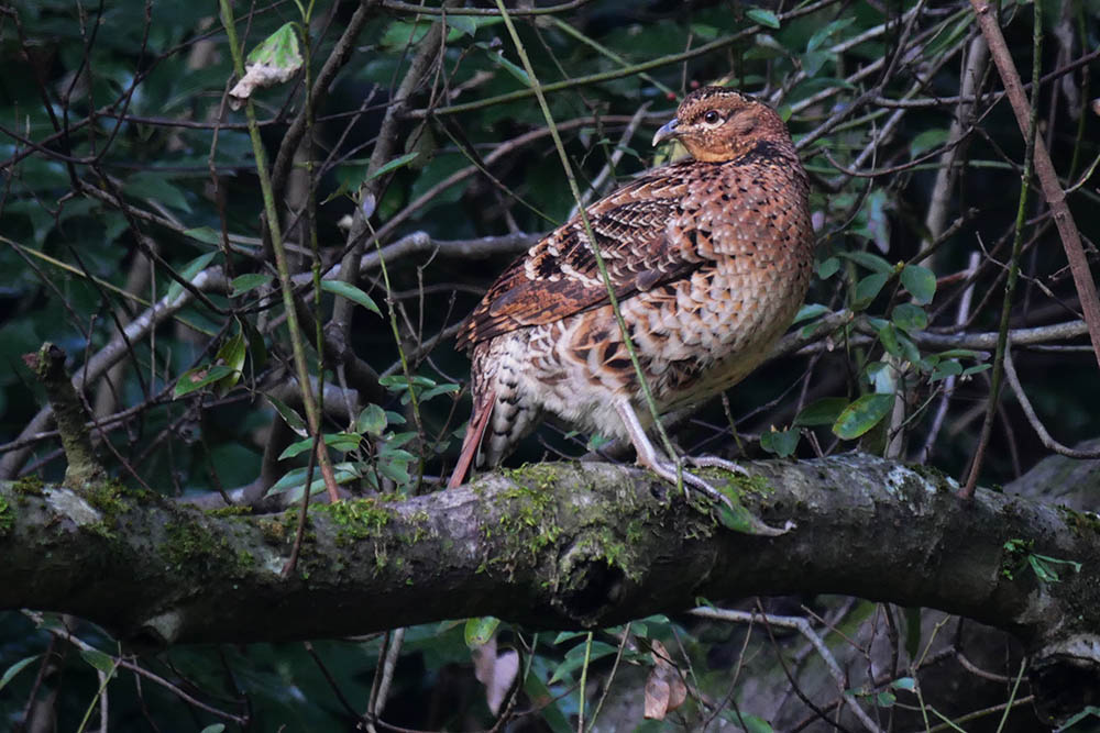 第二防火層のアカヤマドリ♀若(木に止まるのは珍しい)