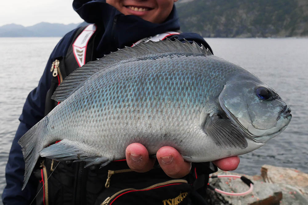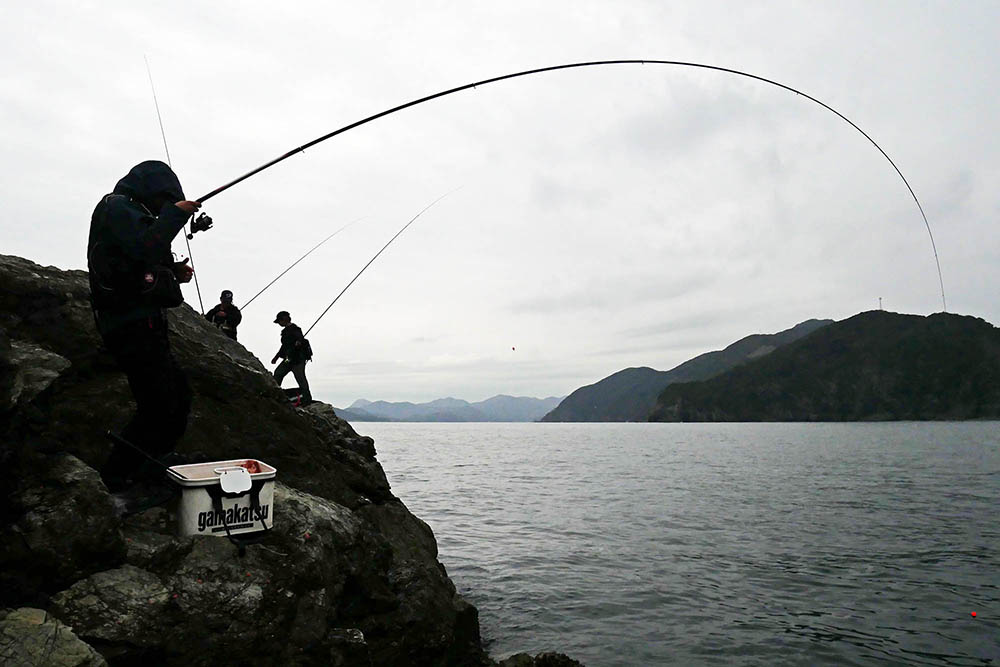 こちらの磯は型こそ小さいものの、グレ・バリ・マダイ・ヒラスズキと竿曲げです。