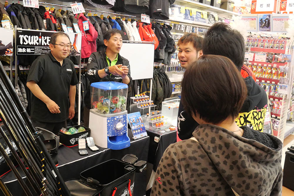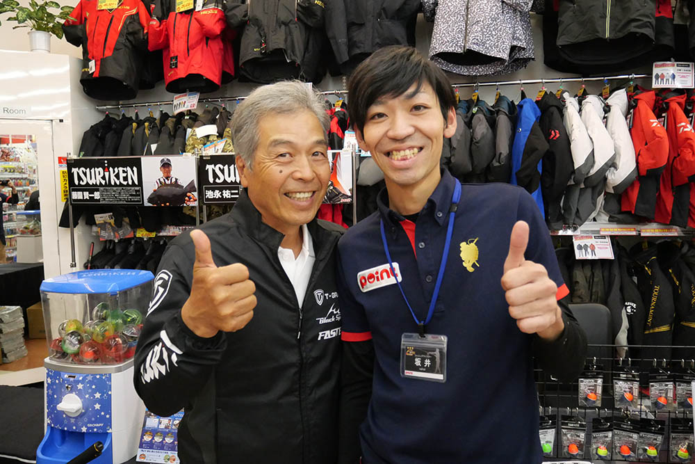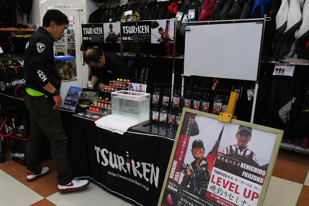 今回は与次郎店で、藤園君と一緒に特設コーナーに居ました。14時からの約1時間はレベルアップセミナーでお話しさせて頂きましたが、秋目での磯釣り・ロイヤルカップで魅せてくれた、藤園君の素晴らしい技の話しなども懐かしくさせて頂きました。