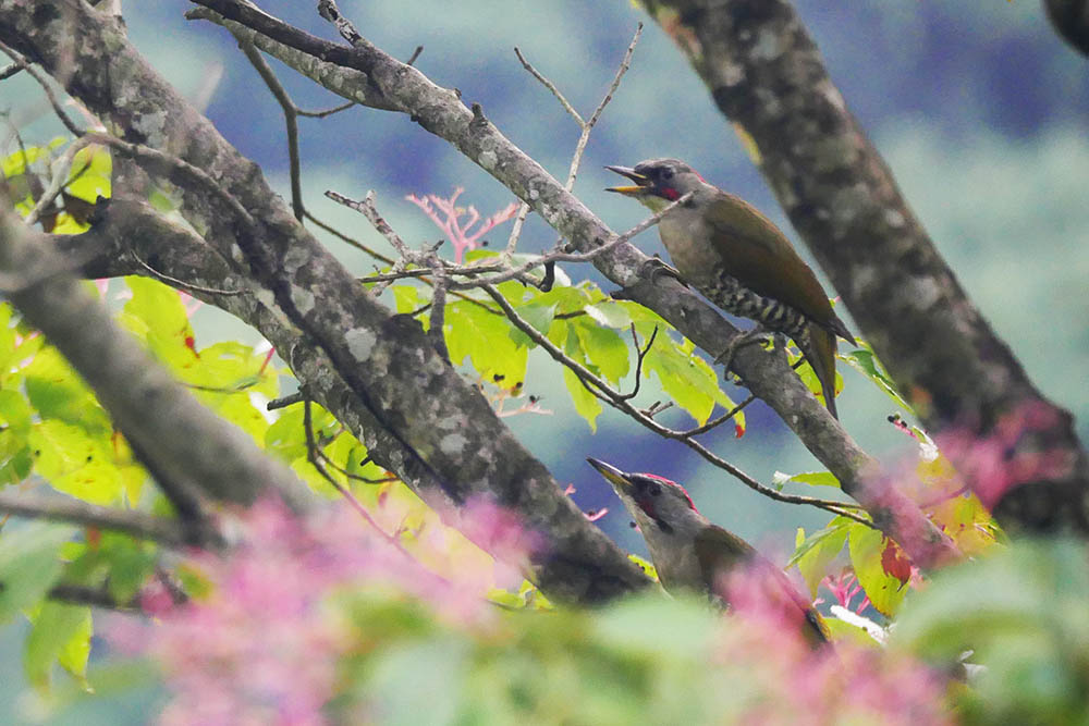 アオゲラ夫婦が笑っている?