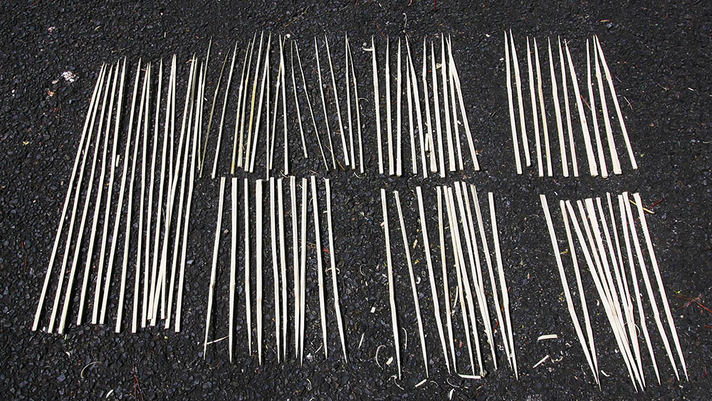 3~4年物の真竹、左がウナギ用で少ないかな? 右はアユ用の竹串