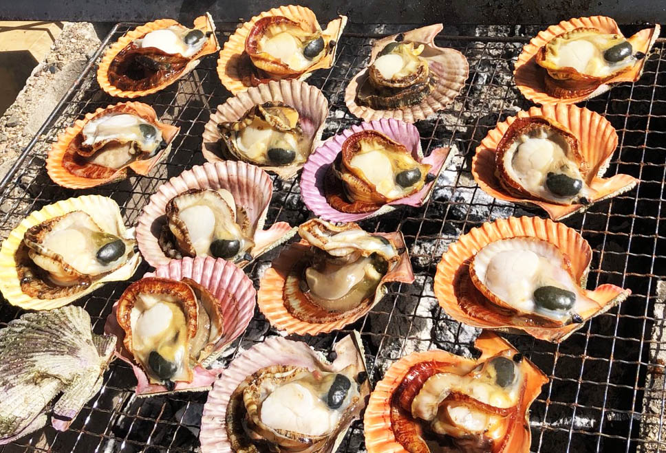 各所から肉やヒオウギガイ・果物・アケビ・・色んな食材が集まり時間が超過。