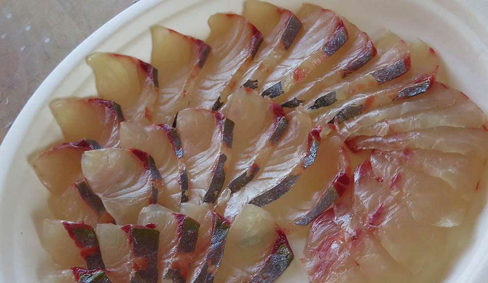 自分の調達品はケンサキイカ・マダイ・シマアジなどで、刺身とリュウキュウ。