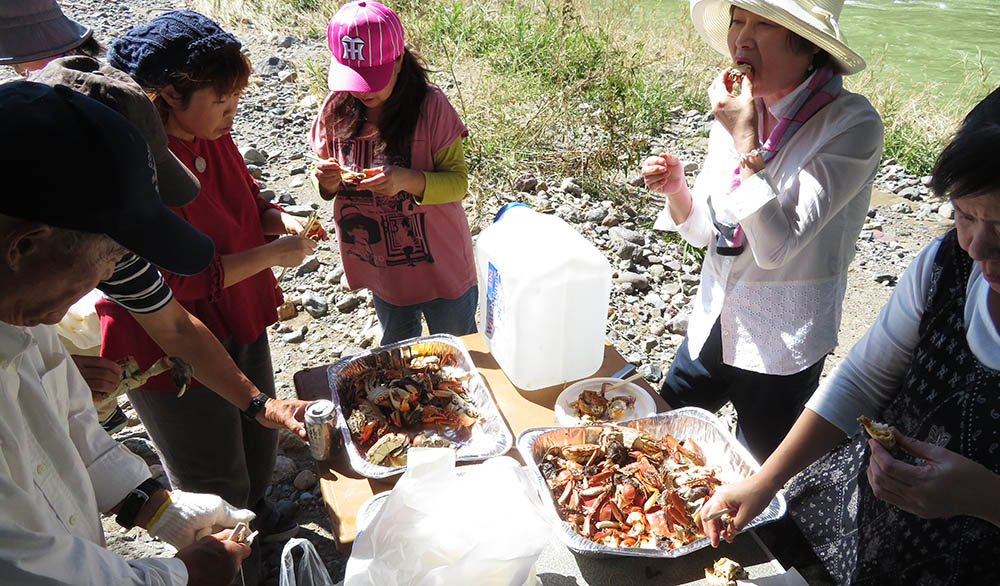 七瀬川のモクズガニ40杯は【蕎加(きょうか)】の御主人勲ちゃんから。