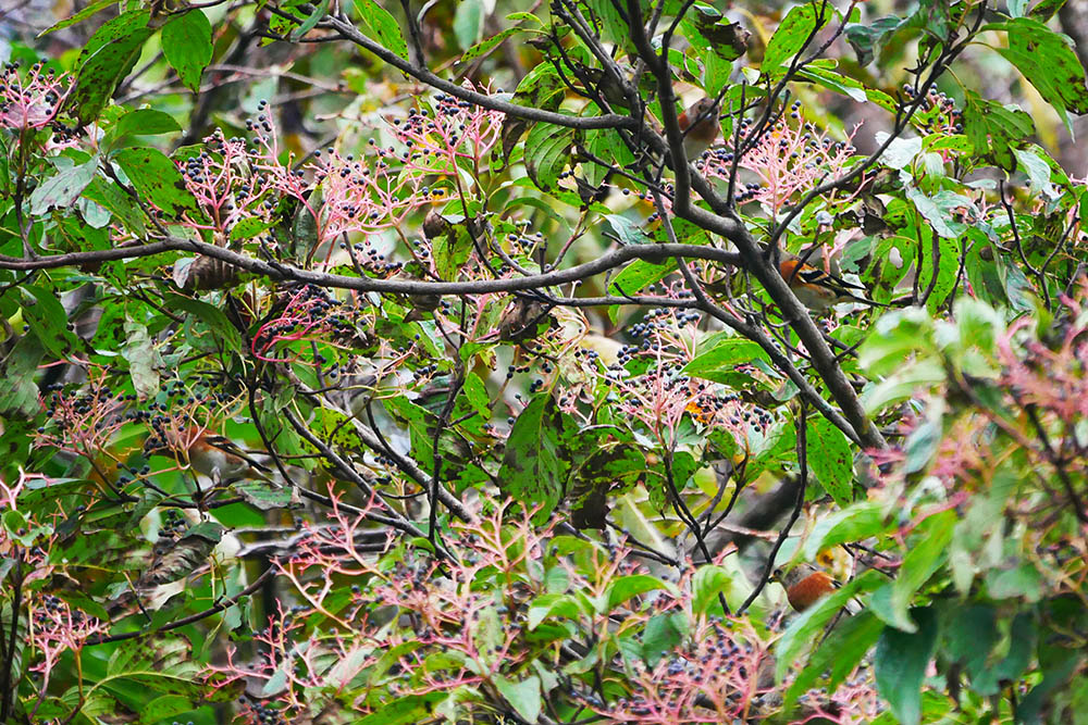 山のクマノミズキは通過する小鳥達で賑わっていますが・・