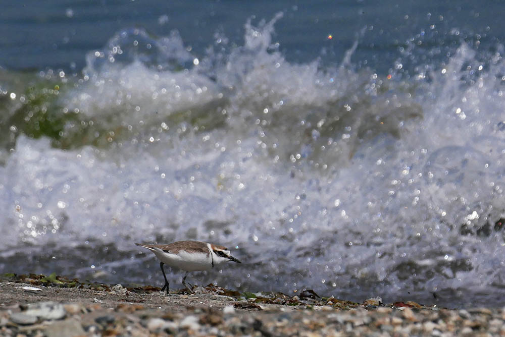 そんな中、海岸を散歩している人の動きに合せ飛翔にも挑戦し数枚の撮影に成功。