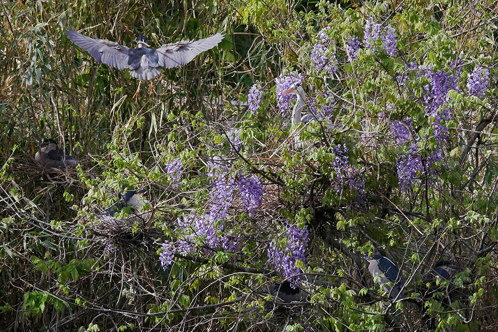 少しこんもりとした桑の木が好きな様で、この木を中心に囀りながら採餌中。