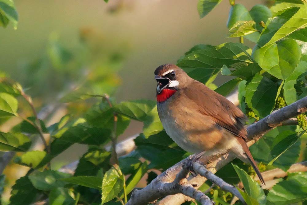 薮に入ると姿は見えませんが、時々桑の木に来て囀る時がシャッターチャンス。