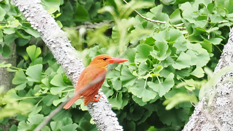 車中からチェックしていると、傍の木にアカショウビンが鳴いて来た。
