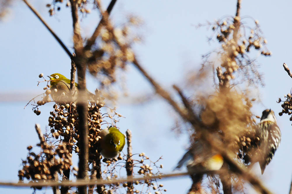 ルリの♀も来ていたし、他の餌場の実が少ない中ココには大量の実が有ります。
