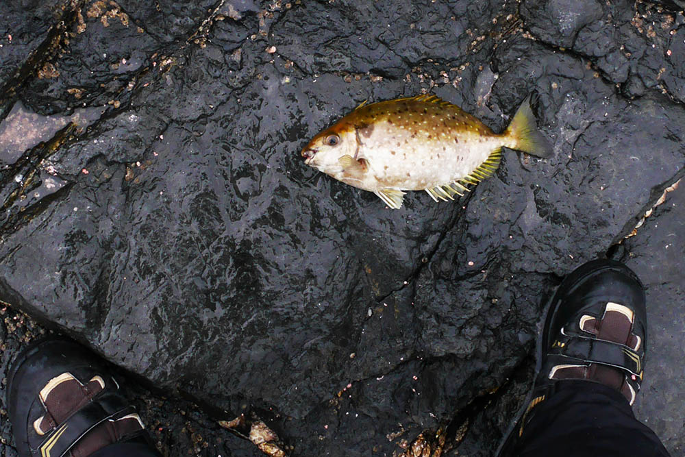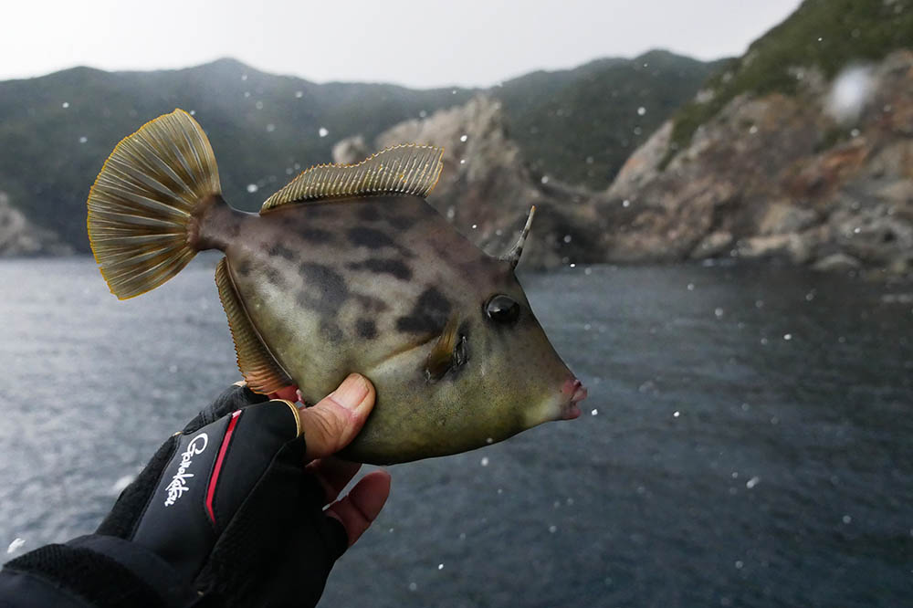 カンダイやベラの時も降っていましたが、カワハギが撮影に適しています